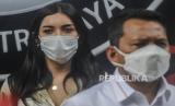Selebgram Millen Cyrus (kiri) dihadirkan saat rilis kasus narkotika di Mapolda Metro Jaya, Jakarta, Senin (1/3). Kepolisian tidak melakukan penahan terhadap Millen Cyrus pasca terbukti positif mengonsumsi psikotropika jenis Benzo pada Ahad (28/2) dan menyerahkannya kepada Badan Narkotika Nasional Kota (BNNK) Jakarta Selatan karena yang bersangkutan masih berstatus rawat jalan rehabilitasi dengan mengonsumsi clozapine, obat antipsikotik, akibat kasus narkoba yang menjeratnya pada November 2020. Republika/Putra M. Akbar (FOTO : Republika/Putra M. Akbar)