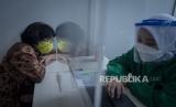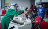 REPUBLIKA.CO.ID, SOLO -- Petugas medis memeriksa tekanan darah dan suhu tubuh warga lanjut usia (lansia) penerima vaksin COVID-19 di Rumah Sakit Umum Daerah (RSUD) Bung Karno, Solo, Jawa Tengah, Senin (1/3/2021).