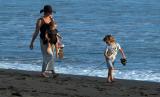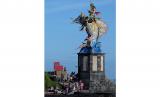 REPUBLIKA.CO.ID, BADUNG -- Wisatawan berjalan di dekat patung Gajah Mina saat mengunjungi Pantai Pererenan, Badung, Bali, Senin (1/3/2021).