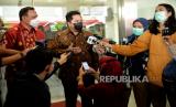 Menteri Badan Usaha Milik Negara (BUMN) Erick Thohir menjawab pertanyaan wartawan usai penandatanganan kerjasama antara BUMN bersama KPK di gedung Juang KPK, Jakarta, Selasa (2/3). (FOTO : Republika/Thoudy Badai)