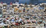 Sejumlah petugas Bea Cukai Banten menata barang barang bukti minuman keras dan rokok impor ilegal yang akan dimusnahkan di Tempat Penimbunan Pabean (TPP), Cikarang, Kabupaten Bekasi, Jawa Barat, Selasa (2/3). Sebanyak 1.168.483 rokok dan 43.727 botol miras impor ilegal dimusnahkan dari hasil penindakan dari tahun 2020 sampai dengan 2021 dengan total kerugian negara mencapai Rp42,1 milyar. (FOTO : Fakhri Hermansyah/ANTARA )
