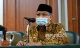 Ketua Umum Pengurus Besar Nahdlatul Ulama (PBNU) Said Aqil Siroj saat menyampaikan konferensi pers di gedung PBNU, Jakarta, Selasa (2/3). PBNU mengapresiasi langkah pemerintah yang mencabut lampiran Peraturan Presiden (Perpres) Nomor 10 Tahun 2021 tentang Bidang Usaha Penanaman Modal yang mengatur soal investasi minuman keras. (FOTO : Republika/Thoudy Badai)