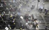 Demonstran lari dari gas air mata yang dilancarkan aparat keamanan saat melakukan protes terhadap kudeta militer di Yangon, Myanmar, 02 Maret 2021. Menteri luar negeri Perhimpunan Bangsa-Bangsa Asia Tenggara (ASEAN) diperkirakan akan mengadakan pertemuan khusus mengenai krisis politik Myanmar pada 02 Maret, di tengah meningkatnya ketegangan di negara itu antara pengunjuk rasa anti-kudeta dan pasukan keamanan. (FOTO : EPA-EFE/LYNN BO BO)