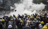 REPUBLIKA.CO.ID, YANGON -- Saksi mata mengatakan polisi Myanmar kembali melepaskan tembakan untuk membubarkan pengunjuk rasa. Sementara, menteri-menteri luar negeri Asia Tenggara (ASEAN) sedang menggelar pertemuan dengan pemerintah militer untuk mencegah kekerasan dan mencari jalan mengakhiri krisis.