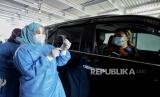 REPUBLIKA.CO.ID, JAKARTA -- Kementerian kesehatan berkolaborasi bersama sejumlah mitra dalam pelayanan vaksin covid-19 secara drive thru di halaman Blok C Kemayoran, Jakarta, Rabu (3/3).