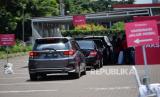 Deretan mobil saat menunggu ditempat observasi usai mengikuti vaksinasi secara drive thru di halaman Blok C Kemayoran, Jakarta, Rabu (3/3). (FOTO : Republika/Thoudy Badai)