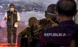 Gubernur Jawa Barat Ridwan Kamil memberikan sambutan saat jumpa pers uji klinis fase III vaksin rekombinan Covid-19 di Gedung Rumah Sakit Pendidikan (RSP) Unpad, Jalan Prof Eyckman, Kota Bandung, Rabu (3/3). Fakultas Kedokteran Universitas Padjajaran (Unpad) segera melaksanakan uji klinis fase III vaksin rekombinan Covid-19 yang dikembangkan produsen vaksin asal Tiongkok, Anhui Zhifei Longcom Biopharmaceutical Co., Ltd. Uji klinis tersebut dijadwalkan akan dimulai pada awal Maret 2021 dengan target 4.000 subjek relawan yang terbagi di dua wilayah yakni Jakarta dan Bandung. Foto: Abdan Syakura/Republika (FOTO : ABDAN SYAKURA/REPUBLIKA)