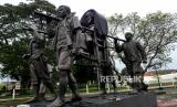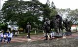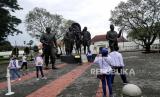 REPUBLIKA.CO.ID, YOGYAKARTA -- Patung gerilya Panglima Besar Jenderal Soedirman dipajang di halaman pintu masuk Benteng Vredeburg, Yogyakarta, Rabu (3/3).
