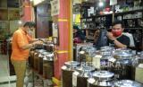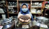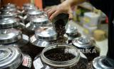 REPUBLIKA.CO.ID, JAKARTA -- Pekerja menyortir biji kopi di salah satu gerai penjual kopi di Pasar Santa, Jakarta, Rabu (3/3).