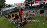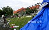 REPUBLIKA.CO.ID, YOGYAKARTA -- Pekerja membongkar tenda yang ambruk akibat hujan angin di Benteng Vredeburg, Yogyakarta, Rabu (3/3).
