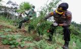 Aparat gabungan, Polisi Polres Lhokseumawe, TNI Kodim 0103 Aceh Utara dan Brimob Detasemen B Polda Aceh mencabuti tanaman ganja dalam operasi pemusnahan ladang ganja di Dusun Cot Rawatu, Desa Jurong, Sawang, Aceh Utara, Aceh, Rabu (3/3/2021). Dalam operasi tersebut petugas memusnahkan dengan cara membakar 15.000 lebih batang ganja di atas lahan seluas 5 hektar, dan menangkap seorang tersangka pemilik ladang ganja. (FOTO : ANTARA/Rahmad)