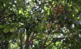Petani memanjat pohon duku untuk dipanen di Kertasari, Kabupaten Ciamis, Jawa Barat, Rabu (3/5/2021). Menurut petani hasil panen duku turun dari biasanya mendapatkan dua kuintal duku per pohon, kini hanya bisa satu kuital akibat musim penghujan, bahkan harga duku ditingkat petani turun menjadi Rp10.000 per klilogram dari biasanya Rp12.500 per kilogram. (FOTO : ADENG BUSTOMI/ANTARA )