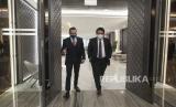 Direktur Utama Bank Syariah Indonesia (BSI) Hery Gunardi (kiri) berbincang dengan Group Chief Executive Officer (CEO) Dubai Islamic Bank (DIB) Adnan Chilwan (kanan) usai melakukan pertemuan di Jakarta, Rabu (3/3/2021). Pertemuan tersebut membahas peluang kerja sama dan pengembangan bisnis antara Dubai Islamic Bank (DIB) dan Bank Syariah Indonesia (BSI) sebagai bank syariah terbesar di Indonesia. (FOTO : Dhemas Reviyanto/ANTARA)