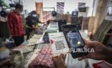 Pengunjung memindai kode QRIS untuk pembayaran dalam acara Karya Kreatif Indonesia (KKI) 2021 Eksotisme Lombok di kawasan destinasi pariwisata super prioritas (DPSP) The Mandalika, Praya, Lombok Tengah, NTB, Rabu (3/3). (FOTO : Aprillio Akbar/ANTARA )