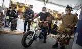 Pengunjung mencoba motor listrik dalam acara Karya Kreatif Indonesia (KKI) 2021 Eksotisme Lombok di kawasan destinasi pariwisata super prioritas (DPSP) The Mandalika, Praya, Lombok Tengah, NTB, Rabu (3/3). (FOTO : Aprillio Akbar/ANTARA )