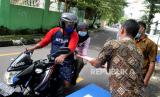 Orang tua wali siswa kelas 6 mengambil soal tes pendalaman materi (TPM) asesmen standar penilaian daerah (ASPD) untuk SD/MI di SD Masjid Syuhada, Yogyakarta, Kamis (4/3). (FOTO : Wihdan Hidayat / Republika)