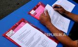 Siswa kelas 6 mengambil soal tes pendalaman materi (TPM) asesmen standar penilaian daerah (ASPD) untuk SD/MI di SD Masjid Syuhada, Yogyakarta, Kamis (4/3). (FOTO : Wihdan Hidayat / Republika)