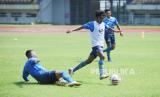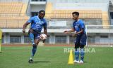 Dua pemain Persib Bandung Victor Igbonefo dan Agung Mulyadi menjalani latihan di Stadion Gelora Bandung Lautan Api (GBLA) menyambut pelaksanaan Turnamen Piala Menpora, Bandung, Kamis (4/3). (FOTO : SUTANTO HADI PERMANA/PERSIB BANDUNG)
