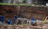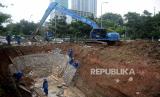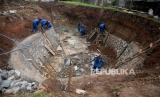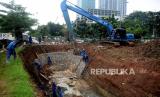 REPUBLIKA.CO.ID, JAKARTA -- Sejumlah petugas Suku Dinas Sumber Daya Air (SDA) Jakarta Pusat mengerjakan pembuatan embung di Jalan Letjend Suprapto, Sumur Batu, Kemayoran, Jakarta , Kamis (4/3). Pembuatan embung seluas 1.000 meter persegi ini diharapkan mampu menyelesaikan masalah genangan yang kerap terjadi di kawasan tersebut.