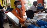 Seorang petugas medis memeriksa kesehatan anggota TNI sebelum vaksinasi di Puskesmas Rangas, Mamuju, Sulawesi Barat, Kamis (4/3/2021). Pasca gempa bumi, vaksinasi COVID-19 tahap pertama dilakukan jajaran TNI Korem 142 Tatag Mamuju yang diikuti sebanyak 475 personil. ANTARA FOTO/Akbar Tado/rwa. (FOTO : ANTARA FOTO)