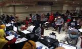 Sejumlah pedagang antre mendapatkan vaksinasi COVID-19 massal tahap pertama di CBD Ciledug, Tangerang, Banten, Kamis (4/3/2021). Pemerintah Kota Tangerang lewat Dinas Kesehatan bekerja sama dengan pengelola pasar melakukan vaksinasi COVID-19 kepada sebanyak 1.100 pedagang pasar tradisional dan CBD Ciledug untuk mencegah penularan COVID-19 dan memberikan semangat serta harapan baru bagi pemulihan ekonomi Kota Tangerang. ANTARA FOTO/Muhammad Iqbal/rwa. (FOTO : ANTARA FOTO)