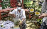 Warga mengolah buah jeruk menjadi makanan dan minuman sehat saat program Geulis (Gerakan Peduli Stunting) di Komplek Taman Rafflesia, Kelurahan Sukapura, Kiaracondong, Kota Bandung, Kamis (4/3). (FOTO : ABDAN SYAKURA/REPUBLIKA)