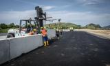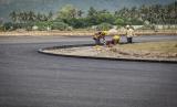 Pekerja menyelesaikan pembangunan proyek Mandalika International Street Circuit di Kawasan Ekonomi Khusus (KEK) Mandalika, Pujut, Praya, Lombok Tengah, Nusa Tenggara Barat, Kamis (4/3/2021). Berdasarkan data Mandalika Grand Prix Association (MGPA), ITDC dan PT PP per Februrari 2021 progres pembangunan lintasan sirkuit MotoGP itu secara kumulatif mencapai 53,27 persen dan ditargetkan selesai pada pertengahan 2021. (FOTO : ANTARA/Aprillio Akbar)