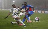 Christian Benteke dari Crystal Palace, kiri, dan Eric Bailly dari Manchester United berebut bola pada laga Liga Premier Inggris antara Crystal Palace melawan Manchester United di Stadion Selhurst Park, London, Inggris, Kamis (4/3) dini hari WIB. (FOTO : AP/Adrian Dennis/Pool AFP)