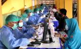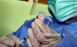 Tenaga kesehatan mengambil vaksin Covid-19 Biofarma saat vaksininasi Covid-19 massal di Pasar Beringharjo, Yogyakarta, Kamis (4/3). Program vaksinasi tahap ke dua di Yogyakarta hingga hari ke tiga belum memenuhi target. Persentase keikutsertaan penyuntikan vaksin Covid-19 sekitar 71 persen dari sasaran. (FOTO : Wihdan Hidayat / Republika)