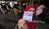 Pedagang mengikuti vaksininasi Covid-19 massal di Pasar Beringharjo, Yogyakarta, Kamis (4/3). Program vaksinasi tahap ke dua di Yogyakarta hingga hari ke tiga belum memenuhi target. Persentase keikutsertaan penyuntikan vaksin Covid-19 sekitar 71 persen dari sasaran. (FOTO : Wihdan Hidayat / Republika)