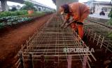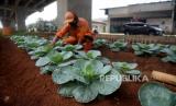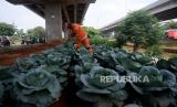 Petugas PPSU Kel Cipinang Melayu Hasan merawat tanaman sayuran yang di tanam dengan memanfaatkan lahan kosong kolong tol Becakayu, Pangkalan Jati, Jakarta, Jumat (5/3). Kehadiran kebun sayur di bawah kolong tol itu membuat lahan yang sebelumnya kosong kini menjadi lebih bermanfaat untuk warga sekitar. Beragam jenis sayuran ditanam dilahan itu antara lain kol, tomat, bawang merah, kangkung, selada,cabai dan aneka sayur lainnya. (FOTO : Prayogi/Republika.)