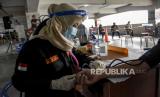 REPUBLIKA.CO.ID, BANDUNG -- Sejumlah pedagang melakukan tahap verifikasi dan pemeriksaan kesehatan sebelum disuntik vaksin Covid-19 di Balubur Town Square, Jalan Tamansari, Kota Bandung, Jumat (5/3).