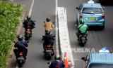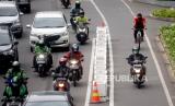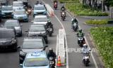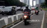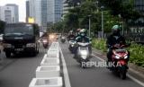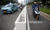 REPUBLIKA.CO.ID, JAKARTA -- Pengedara sepeda motor melintas di jalur sepeda permanen di kawasan Sudirman, Jakarta, Jumat (5/3).