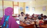 REPUBLIKA.CO.ID, SORONG -- Kegiatan belajar mengajar secara tatap muka kembali digelar di SD Al Maarif 1 Kampung Maibo, Kabupaten Sorong, Papua Barat, Sabtu (6/3).