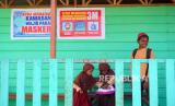 Seorang guru dengan masker di wajahnya mengajar sejumlah murid yang tirai menggunakan masker di SD Al Maarif 1 Kampung Maibo, Kabupaten Sorong, Papua Barat, Sabtu (6/3/2021). Sejumlah sekolah di Provinsi Papua Barat sudah mulai melakukan pembelajaran tatap muka setelah hampir setahun pembelajaran dilakukan secara dalam jaringan (daring) atau luar jaringan (luring) selama masa Pandemi COVID-19. (FOTO : ANTARA FOTO/OLHA MULALINDA)