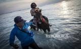 Wisatawan bersiap menyelam di Gili Trawangan, Kepulauan Gili, Lombok Utara, Nusa Tenggara Barat, Sabtu (6/3/2021). Kepulauan Gili merupakan salah satu destinasi wisata keunggulan Lombok yang terdiri dari tiga pulau, yaitu Gili Trawangan, Meno, dan Air. (FOTO : ANTARA FOTO/APRILLIO AKBAR)