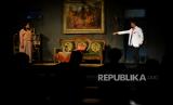 Seniman dari Komunitas Ngaos Art menampilkan musikalisasi puisi dan drama bertajuk The Marriage Proposal di Padepokan Sobarnas Martawijaya, Tarogong Kaler, Kabupaten Garut, Jawa Barat, Sabtu (6/3).
