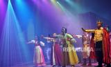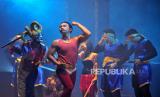 Seniman sanggar Teater Kini Berseri menampilkan pertunjukan operet berjudul Sirkus Bulan Sabit di Denpasar, Bali, Sabtu (6/3/2021). Operet tersebut mengisahkan sisi lain dari kehidupan para pekerja pertunjukan hiburan khususnya sirkus yang juga diharapkan dapat membangkitkan semangat berkesenian selama masa pandemi COVID-19. (FOTO : ANTARA FOTO/FIKRI YUSUF)