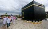 Umat Islam melakukan simulasi tawaf di replika Kabah di Asrama Haji di Kota Gorontalo, Gorontalo, Sabtu (6/3). Asrama Haji Gorontalo membuka layanan wisata religi bagi masyarakat umum maupun siswa dengan berbagai fasilitas dan pengalaman yang sama selayaknya jemaah calon haji. (FOTO : ANTARAFOTO/ADIWINATA SOLIHIN)