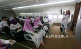 Sejumlah warga mengunjungi replika pesawat Garuda di Asrama Haji di Kota Gorontalo, Gorontalo, Sabtu (6/3). Asrama Haji Gorontalo membuka layanan wisata religi bagi masyarakat umum maupun siswa dengan berbagai fasilitas dan pengalaman yang sama selayaknya jemaah calon haji. (FOTO : ANTARAFOTO/ADIWINATA SOLIHIN)
