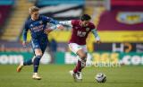 Dwight McNeil (kanan) dibayangi Martin Odegaard (kiri) pada laga antara Burnley FC dan Arsenal FC di Burnley, Inggris, Sabtu (6/3). (FOTO : EPA-EFE/Jon Super / POOL )