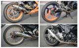 Foto kolase kendaraan motor yang menggunakan knalpot bising di kawasan Monumen Nasional (Monas), Jakarta, Ahad (7/3). (FOTO : Republika/Thoudy Badai)