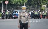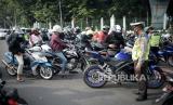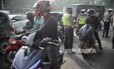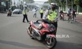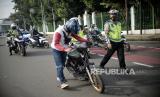 REPUBLIKA.CO.ID, JAKARTA -- Petugas Kepolisian melakukan razia pengendara motor yang menggunakan knalpot bising di kawasan Monumen Nasional (Monas), Jakarta, Ahad (7/3). Direktorat Lalu Lintas Polda Metro Jaya mengeluarkan kebijakan terkait larangan kendaraan bermotor berknalpot bising melintas di kawasan Monas pada hari Sabtu dan Ahad guna memberikan kenyamanan bagi warga yang hendak berolahraga di area tersebut.
