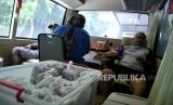 REPUBLIKA.CO.ID, YOGYAKARTA -- Palang Merah Indonesia (PMI) menemui warga untuk melakukan donor darah di Mobil Unit Donor Darah PMI, Magelang, Jawa Tengah, Ahad (7/3). Strategi jemput bola dilakukan PMI untuk menambah stok cadangan darah. Selama masa pandemi Covid-19, cadangan darah PMI turun drastis.