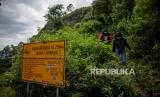 Wisatawan menuruni Gunung Batu yang merupakan bagian dari Sesar Lembang di Pasirwangi, Lembang, Kabupaten Bandung Barat, Jawa Barat, Ahad (7/3). Peneliti Geoteknologi LIPI Mudrik R Daryono mengatakan Sesar Lembang diprediksi berada pada fase batas akhir siklus terjadinya gempa bumi usai (FOTO : ANTARA FOTO/RAISAN AL FARISI)