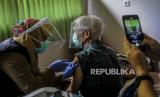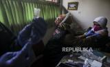 REPUBLIKA.CO.ID, JAKARTA -- Tenaga kesehatan saat menyuntikkan vaksin Covid-19 kepada warga lansia di SD 04 Cilandak Barat, Jakarta, Senin (8/3).