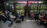 Warga lansia didata untuk melaksanakan vaksinasi Covid-19 di SD 04 Cilandak Barat, Jakarta, Senin (8/3). Kementerian Kesehatan menggelar vaksinasi Covid-19 secara massal bagi kelompok lansia selama empat bulan di DKI Jakarta dengan target 1.000 orang per hari. Republika/Putra M. Akbar (FOTO : Republika/Putra M. Akbar)