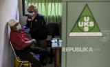 Tenaga kesehatan memeriksa kesehatan warga lansia yang akan melaksanakan vaksin Covid-19 di SD 04 Cilandak Barat, Jakarta, Senin (8/3). Kementerian Kesehatan menggelar vaksinasi Covid-19 secara massal bagi kelompok lansia selama empat bulan di DKI Jakarta dengan target 1.000 orang per hari. Republika/Putra M. Akbar (FOTO : Republika/Putra M. Akbar)