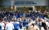 Ketua Umum Partai Demokrat Agus Harimurti Yudhoyono (AHY) saat tiba di Kantor Direktorat Jenderal aAdministrasi Hukum Umum Kementerian Hukum dan HAM, Kuningan Jakarta, Senin (8/3). Tujuan kedatangan AHY beserta jajaran pengurus tingkat daerah tersebut ingin menyampaikan pada Kemenkumham, jika kongres luar biasa (KLB) yang digelar kubu Moeldoko di Deli Serdang, Sumatera Utara (Sumut), ilegal. (FOTO : Prayogi/Republika.)