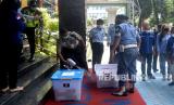 Petugas menyemprotkan disinfektan pada berkas-berkas yang dibawa sebelum Ketua Umum Partai Demokrat Agus Harimurti Yudhoyono (AHY) tiba di Kantor Direktorat jenderal aAdministrasi Hukum Umum Kementerian Hukum dan HAM, Kuningan Jakarta, Senin (8/3). Tujuan kedatangan AHY beserta jajaran pengurus tingkat daerah tersebut ingin menyampaikan pada Kemenkumham, jika kongres luar biasa (KLB) yang digelar kubu Moeldoko di Deli Serdang, Sumatera Utara (Sumut), ilegal.Prayogi/Republika. (FOTO : Prayogi/Republika.)